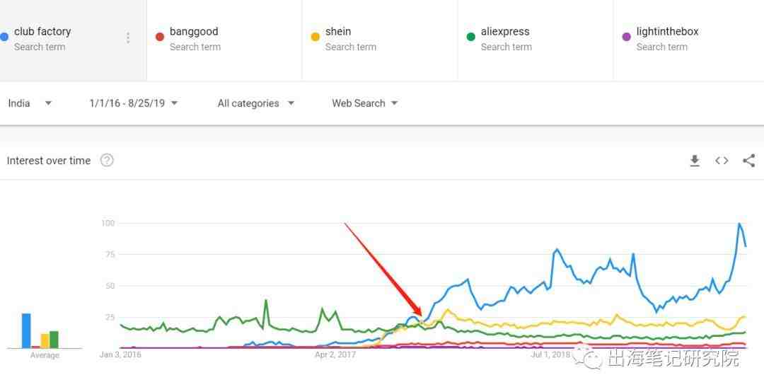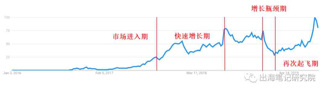 从下图我们能更直观地看到,Club Factory 的品牌热度经历了从初步进场到快速增长,遇到瓶颈,再到逐步走出低谷并实现腾飞这四个发展阶段。