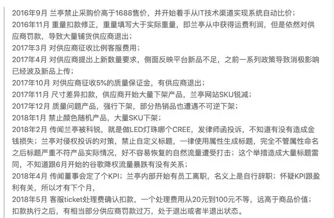 郭去疾对公司供应商的管理极其严格,然而严格的管理分为有效的严格管理和无效错误的严格管理,郭大侠的管理基本都是无效管理,甚至可以说是粗暴的反作用的管理。下面的这段是前兰亭员工总结的关于兰亭对供应链举措: