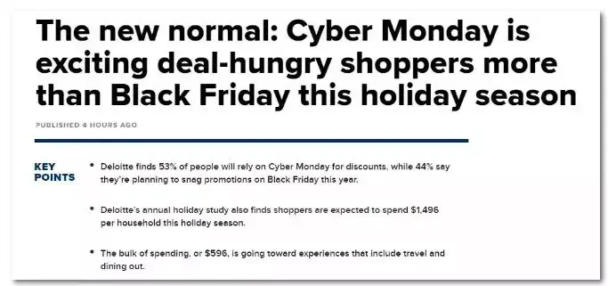 从数据看市场 今年整体的电商市场不仅会比去年增长不少,而且网一有可能超越黑五成为消费者最青睐的购物节日。 整体电商的增长 根据德勤全球的数据来看,2019年的电商市场增长率将会再攀新高,而销售额也会超过往年的年末旺季达到1440亿美元左右。今年全美消费者在线上购物的金额比例再次碾压线下零售,几乎已经快到了线下消费金额的2倍。 得益于电商整体市场的增长,年中的Prime Day也表现出一个强而有力的增长趋势。本来只有部分比较知名的大卖家能够通过Prime Day活动大获全胜,但今年也有不少中小卖家也突破销量纪录。Prime专享折扣更是中小卖家热衷参加的活动,Prime Day整体效果远好于去年。 消费者购物热情保持高昂 尽管受到中美贸易摩擦的影响,消费者普遍对未来的经济形势比较悲观,大部分人认为美国在2020年将会迎来经济下行。不过消费者的购物热情并没有受到这个因素的影响,约有7成以上的消费者表示会在年末旺季的时候进行购物,保持和前两年一样的水平。 而随着电商市场的持续稳定增长,今年网一的销售额也有望突破黑五。网一则是亚马逊联合电商巨头们一起推出的“电商版黑五”活动,用来抢占线下销售的份额。根据外媒的调查数据显示,大多数的消费者都更加青睐于在网一购物。 备战黑五网一 卖家可以在 2019 年 11 月 15 日前为“黑五”和“网一”创建 Prime 专享折扣。卖家在卖家平台中点击广告选项卡,然后选择 Prime 专享折扣即可创建成功。参加Prime专享折扣的商品会在搜索结果和商品详情页面中显示折扣价、被划掉的正常价格以及节省费用一览。卖家可根据目前店铺状况,选择参加“黑五”或者“网一”活动,也可同时参加两个活动。 ▶ “黑五”时间为:11月28-29日 ▶ “网一”时间为:12月2日 ▶ 同时参加两个活动:11月28日-12月2日 ▶ 参与资格:亚马逊物流 (FBA) 卖家且产品必须在全国范围内符合亚马逊物流和 Prime 配送条件。 另外,此次的Prime专享折扣活动更有惊喜:黑五Coupon则直接取消限定只有Prime会员使用折扣,只要是在黑五窗口期内创建的Coupon,普通用户和Prime会员都能看见并且使用Coupon!