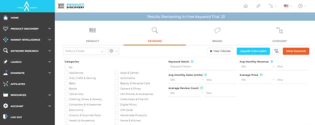 Viral Launch直接从亚马逊提供关键词研究结果,该平台包括一个高级关联特性,允许研究关键字的运营人员进一步缩小研究结果,并仅返回最相关的数据,为运营搜索词使用大规模的算法支持。