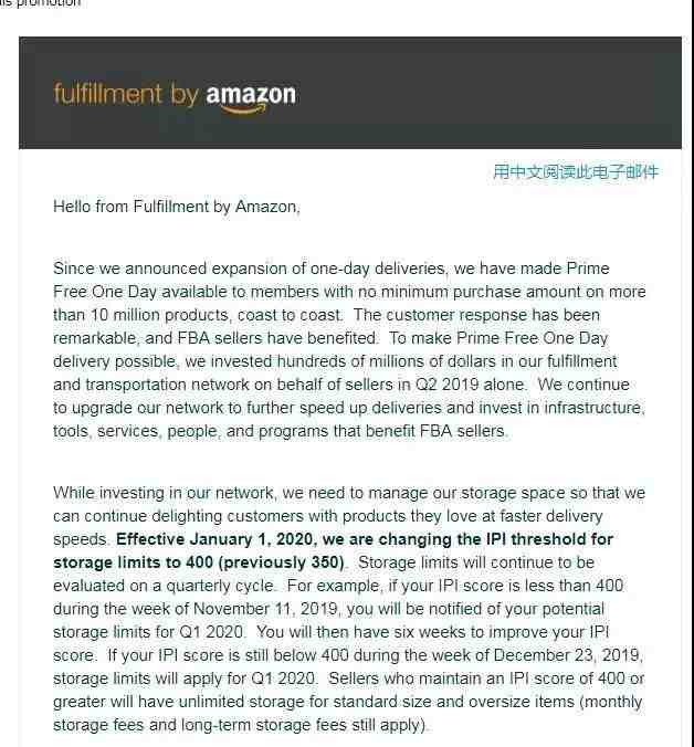 首先亚马逊会给大家一个缓冲期,你在2020年第1季度是否会拥有无限库容,取决于你在2019年第4季度的IPI分数。