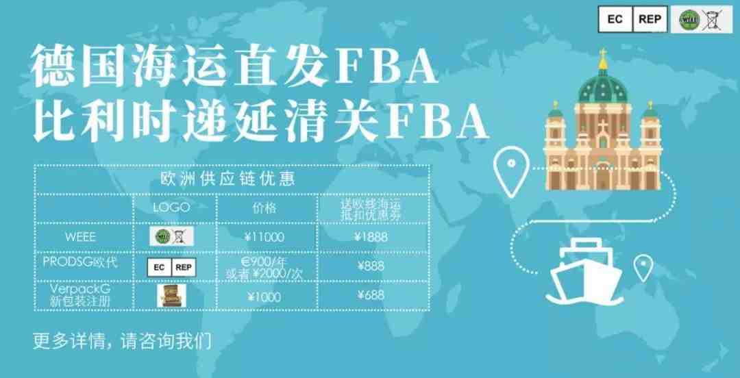 其中德国海运FBA直发渠道非常适合做德国跨境电商平台的卖家朋友们,不仅告别海运从英国中转到德国的尴尬之处,也大大节省了德国头程的物流运费,优惠活动如下图: