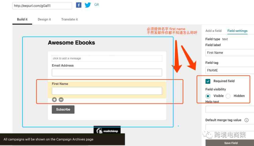 你不需要客户的太多info 你只需要知道first name 和email 即可,但是一定记得在右侧导航栏选择 required field 这个选项,first name 必须填写的。