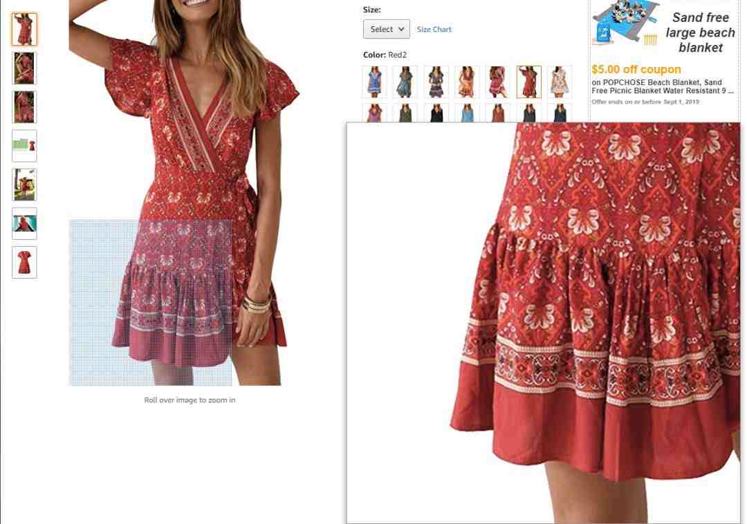 因此卖家在拍摄产品图时,应该使用分辨率足够高的设备拍摄特写。特写必须能够经得起放大,不能像素化或带有颗粒感。消费者总会在购买之前放大产品图看看,所以放大功能很流行。如下图所示就是亚马逊的产品图放大功能: