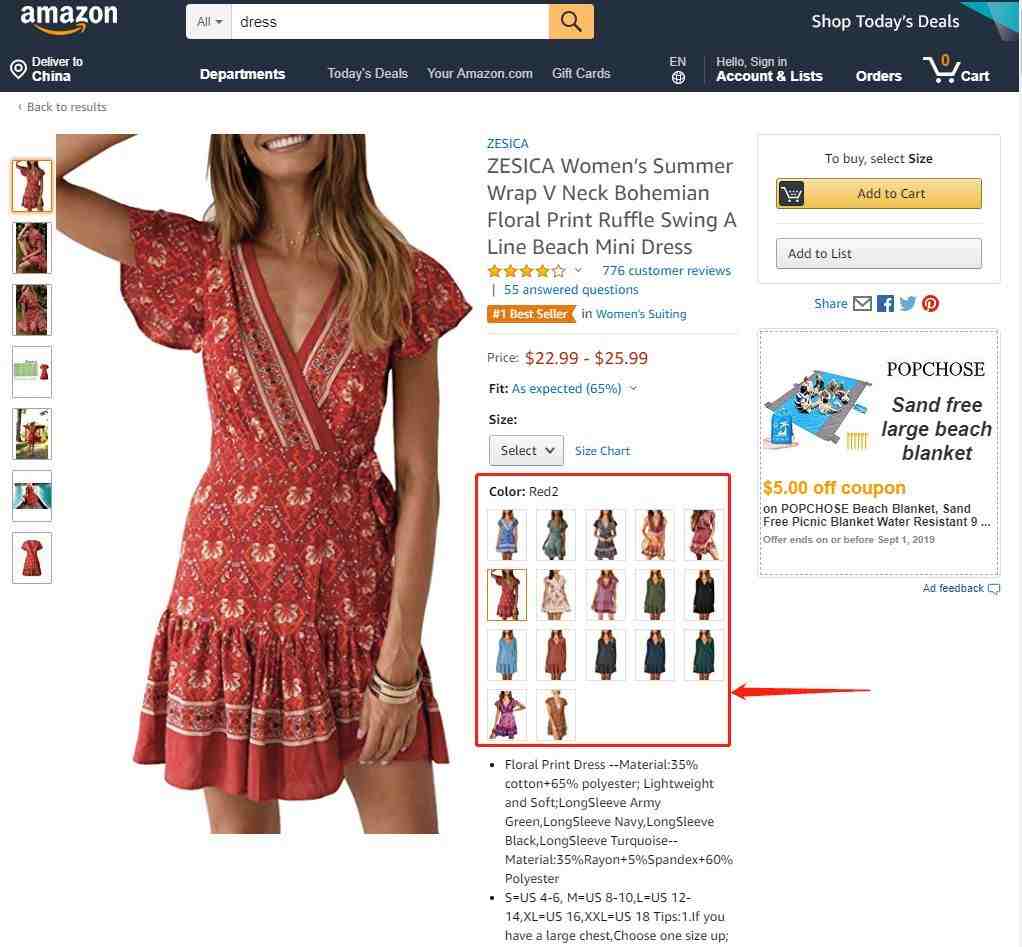 除此之外要注意,如果你的产品listing有多种变体,确保包含系列中所有颜色和尺寸的产品图。这样一来,客户才能对产品有更清晰的认识,从而更加有可能购买产品。如下图所示: