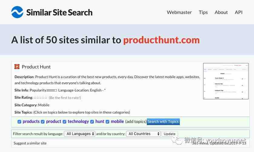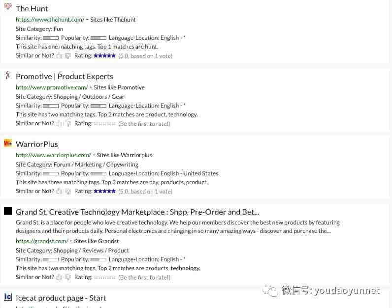 我们搜索与上文中提到的producthunt.com相似的网站,结果如下文,出现了50个类似的网站。