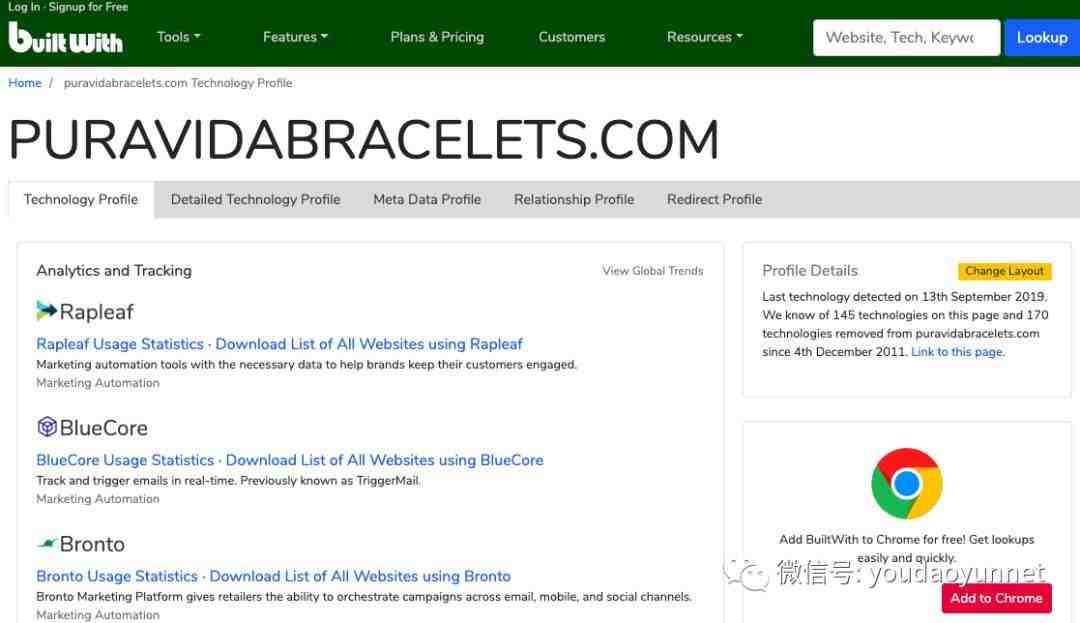 我们输入一个站点 puravidabracelets.com进行查询,查询出来了: