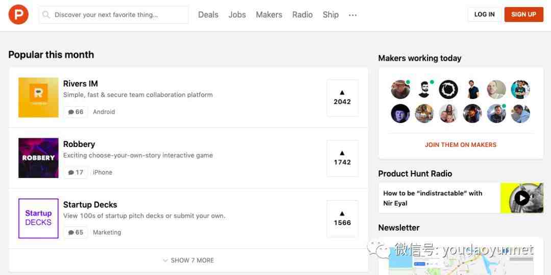 适合小编这种愿意去体验各种产品的新工具发烧友。国内曾经有很多模仿者,比如 36kr.com 的 next.36kr.com,不过今年关闭了。这个网站允许用户提交自己的网站到上面,以日为单位,展示每日推荐的网站/app,并通过投票数决定排名,排名靠前能展示在首页。