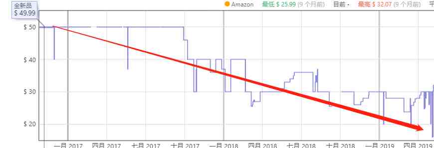如上图所示,价格从2017年上线的49美金疯狂降到2019年的20美金不到。