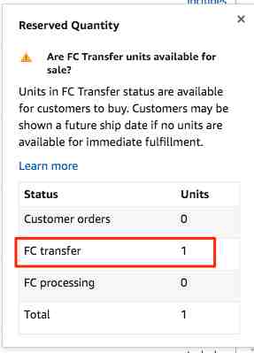 当你的库存从一个FBA仓库转移至另一个仓库时,产品就会处于“Reserved”(预留)状态,也就是“Backordered”(备货中)。