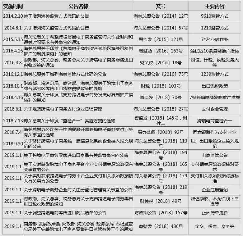对跨境电子商务直购进口商品及适用“网购保税进口”(监管方式代码1210)进口政策的商品,按照个人自用进境物品监管,不执行有关商品首次进口许可批件、注册或备案要求。对相关部门明令暂停进口的疫区商品和对出现重大质量安全风险的商品启动风险应急处置时除外。海关对跨境电子商务零售进出口商品及其装载容器、包装物按照相关法律法规实施检疫,并根据相关规定实施必要的监管措施。通过国际贸易“单一窗口”或跨境电子商务通关服务平台向海关传输交易、支付、物流等电子信息。直购进口模式下,邮政企业、进出境快件运营人可以接受跨境电子商务平台企业或跨境电子商务企业境内代理人、支付企业的委托,在承诺承担相应法律责任的前提下,向海关传输交易、支付等电子信息。综试区城市出口——可继续采取“清单核放、汇总统计”方式《申报清单》与《中华人民共和国海关进(出)口货物报关单》具有同等法律效力。