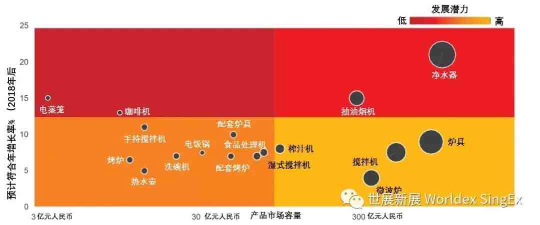 由于综合增长率、营业额和利润率等多方面因素,RO/UV水净化器、抽油烟机、燃气炉是目前市场上最受关注的产品。