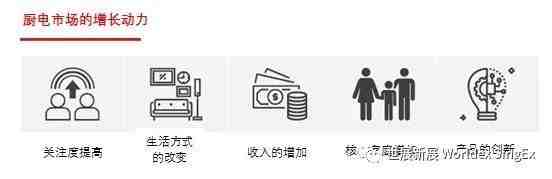 食品加工电器、煮食电器占厨电市场容量的余下45-50%,年增长率分别为8%及9%。