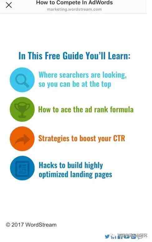 取得用户信任。无论你使用的着陆页目的是什么,这点都是非常重要的。实际上,展示在着陆页上的所有内容,从图片到数据,都是为了取得用户信任。通常很容易夸大或编造,要确保所说的一切是真实的。此外,还可以使用一些赢得信任的徽章、知名公司的LOGO,退款保证,产品视频等等。