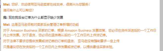 就目前的情况来说,后台出现这种情况的卖家不必惊慌,可以不做任何操作,也可以逐一上传发票。至于是否需要开通亚马逊增值税计算器,建议咨询客服缺少发票问题是否能通过该方法解决,再进行下一步操作。