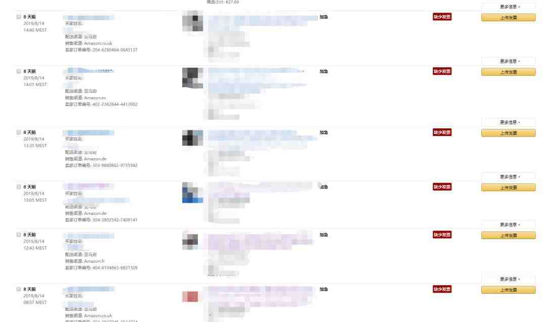 如果开了亚马逊增值税计算器,就不用手动上传,没有开的欧洲站都会出现缺少发票的状况。