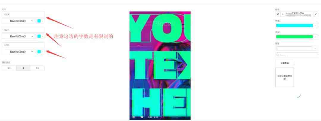 点开任何一个视频模板就可以进行一些自定义话的编辑了。