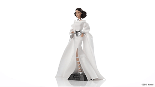 莱娅公主(Princess Leia)芭比娃娃以优雅的全白色礼服展示角色的标志性外观,搭配戏剧性的斗篷式袖子和镀铬腰带、手包,带来清爽的光泽和质感。莱娅公主的标志性耳机发型经过重新设计,采用了双辫丸子头,并增加了发量。