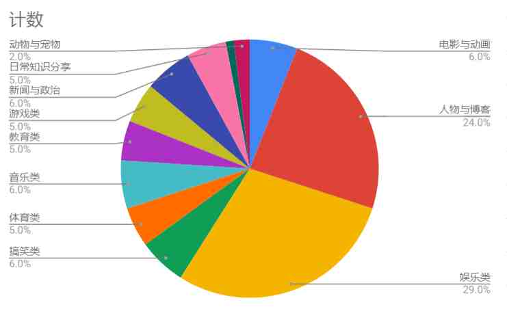 新加坡YouTubeTOP100排行榜网红类型分布图