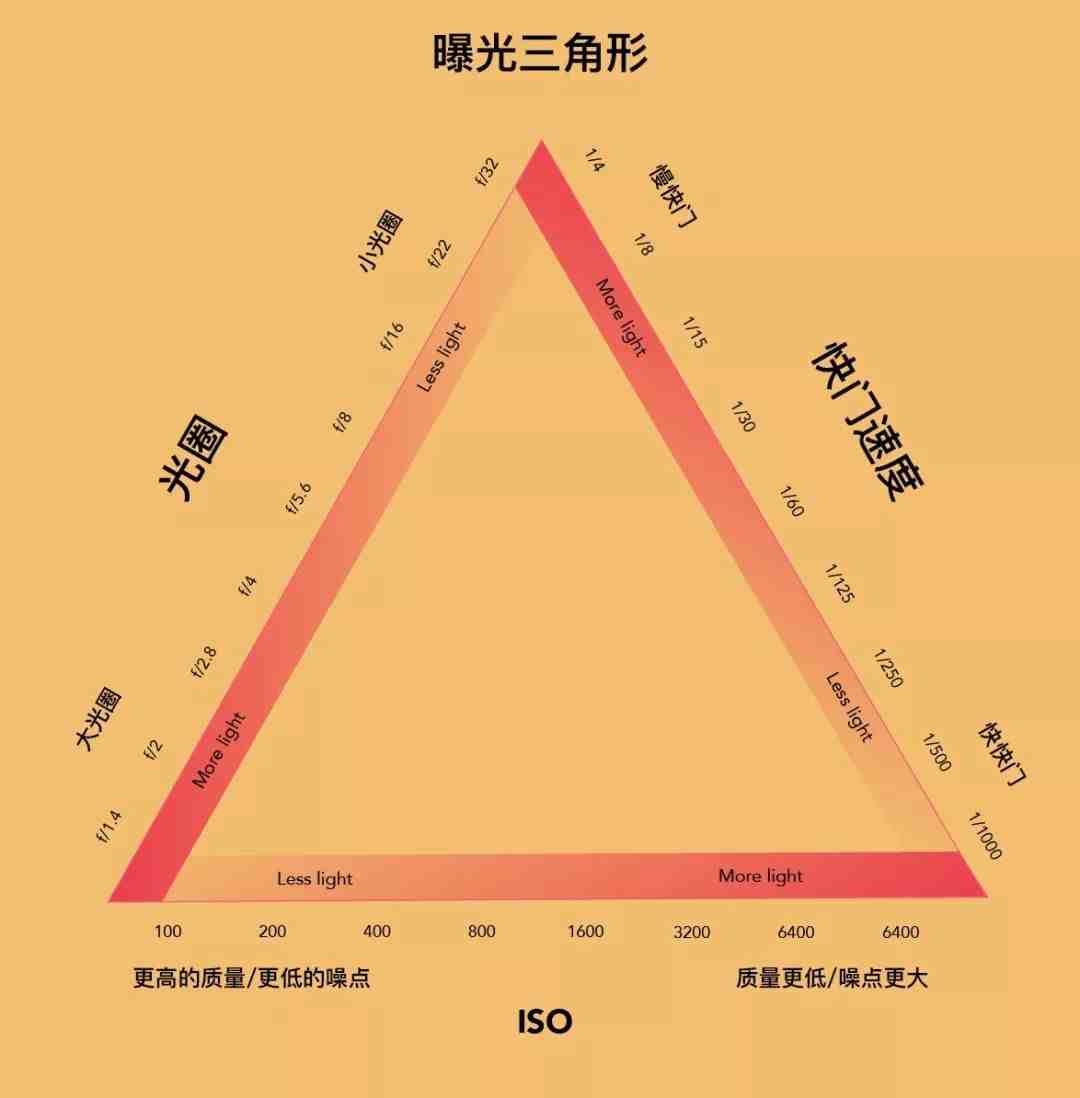 快门速度是指相机传感器曝光的时间,也可以理解为相机眨眼的速度。快门速度一般以秒为单位,或者几分之一秒,通常分母越大,速度越快,1/1000秒快于1/30。