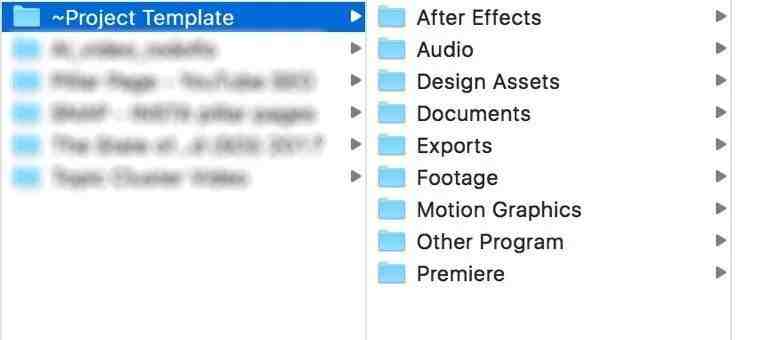 视频的拍摄非常需要条理清晰的文件分类。首先你需要使用大容量硬盘存储这些视频文件,其次是需要做好系统的文件夹结构,每个项目都应该有一个总文件夹,下面的子文件夹可以根据一些常用的分类来划分,例如视频、声音、设计材料等,下图就是一个经典的模板,可以套用。
