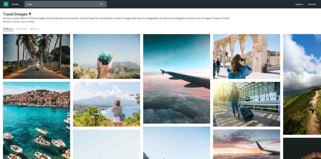 我们来搜索一些关于旅行主题的图片,就会出现很多高质量的图片,然后找一些风格和刚才ins账号相类似的图片就可以了。