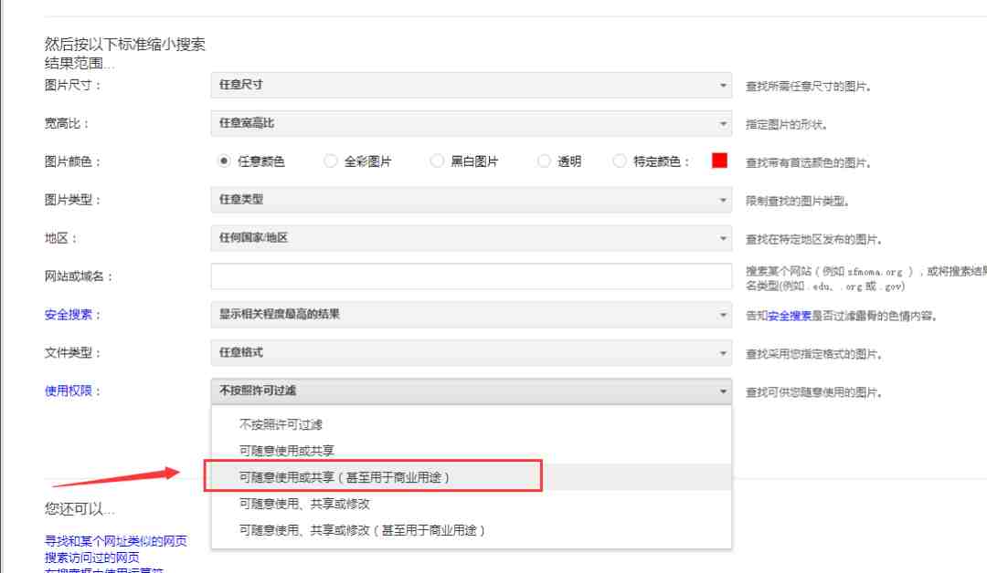 B.然后选择“可随意使用或分享(甚至用于商业用途)”搜索出来的图片就可以随意使用了。
