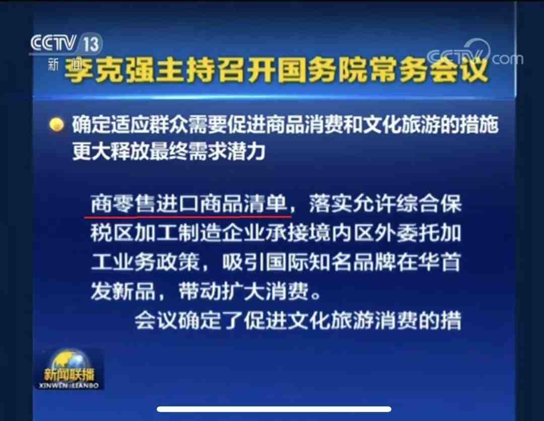 国务院总理李克强7月31日主持召开国务院常务会议。会议指出,要调整扩大跨境电商零售进口商品清单。
