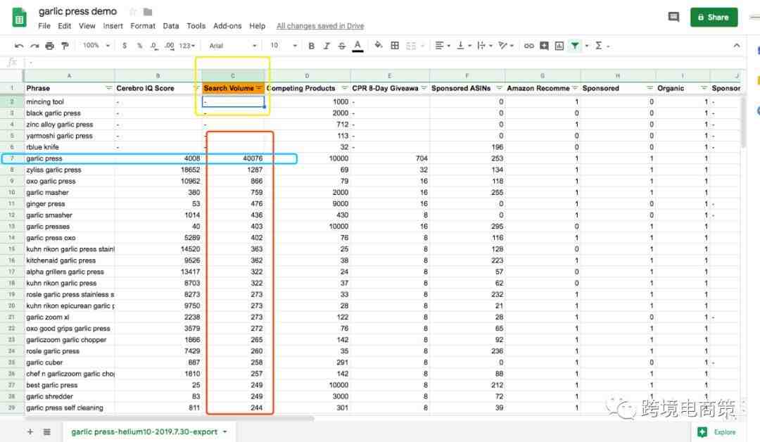 其实这个我们只需要关注的列是search volume ,我们根据搜索量的大小 排个序,然后把和我们的产品高度相关的关键词,埋到listing,今年的话这个埋词顺序也有发生一些变化,今年的会议上Kevin king 也提到过,并且我从其他几个大卖那里 也听到了,不知道是真的还是假的,因为亚马逊抓词的顺序或者从哪个模块抓的多哪个模块比较重呀,从来不会公开,所以我在这里 只能告诉大家的是title ,bullet point ,subject matter , backend KW都重要,所以这些词根据亚马逊的新的规则,埋在适当的位置。