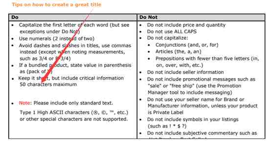 上个月,美国站和加拿大站率先发出了产品标题政策的更变通知,欧洲站和印度站也从7月22日起开始同步执行该政策;接下去,该政策还会推进到日本等站点,针对所有非媒体类(Media)的产品,无论您是使用FBM自发货还是通过亚马逊FBA配送,都必须遵循。 产品标题设置有了新的规范与要求,对于不符合新政策要求的,或者说违反亚马逊标题政策的产品,在亚马逊搜索结果中将会被取消展示。 (图源亚马逊官方通知截图) 大多数卖家就产品标题政策变更纷纷表示不赞同,特别是亚马逊把原本的200个字符改成50个字符,字符越来越少,标题关键词设置就越来越难了。还有就是产品的标签与产品标题必须一致,否则会被拒收或不予配送。 不过没多久,亚马逊又把字符限制改回了200个字符;产品标签与产品标题不一致会被拒收或不予配送的内容也删除了。 (图源亚马逊产品标题要求帮助页面截图) 接下来,船长将对这次亚马逊产品标题的新要求和大家做个分享交流,仅供参考和学习。卖家们请及时做好产品标题自查,并在后续设置时多加留意。 产品标题设置新要求 1 标题长度 分类指南的查找步骤如下: ①打开帮助页面库存文件模板,找到“Style Guide”这一列; ②按照分类去下载分类指南PDF,查看Product Title。 这里船长给大家列举几个: 婴儿类别= 50个字符 分类指南 – https://s3.amazonaws.com/merchant-facing/StyleGuides/BabyStyleGuide.pdf 服装及配饰= 80字符 分类指南 – https://images-na.ssl-images-amazon.com/images/G/01/SellerCentral/ClothingStyleGuide.pdf 消费电子产品= 150个字符 分类指南 – https://images-na.ssl-images-amazon.com/images/G/01/rainier/help/CEStyleGuide.pdf 艺术品=200个字符 分类指南 – https://images-na.ssl-images-amazon.com/images/G/01/rainier/help/FineArtStyleGuide.pdf 照明产品= 50个字符 分类指南 – https://images-na.ssl-images-amazon.com/images/G/01/rainier/help/LightingStyleGuide.pdf 工具和家居装修= 50个字符 分类指南 – https://images-na.ssl-images-amazon.com/images/G/01/rainier/help/ToolsAndHomeImprovement_StyleGuide.pdf 其他更多分类指南,也可以直接访问欧洲站点的各品类分类指南下载页面进行相关操作。 地址: https://sellercentral.amazon.co.uk/gp/help/1641?language=zh_CN&ref=ag_1641_cont_200332540 特别提醒:船长注意到虽然这些分类产品有些字符限制是50个字符,但亚马逊给出的例子是80多个字符。因此,船长建议大家以文字内容为准,不参考示例标题的字符数量。 例如,工具和家居装修要求 50个字符: 亚马逊给出的例子如下: 根据亚马逊的要求,标题最好简洁明了,建议控制在80字符或更少。如果您的产品标题超过推荐的字符要求,但仍然在200字符内,只要不出现那些不允许的数字和符号,则不会影响您的产品在搜索结果的展示。 2 标题大写 3 标题中的数字与符号 4 标题中包含的商品信息 5 使用变体关系的产品标题 6 产品标题中的禁用词举例 与此同时,对于亚马逊产品标题关键词筛选和使用,卖家也同样有很多问题需要注意的,比如,选用精准关键词,切勿堆砌关键词等。
