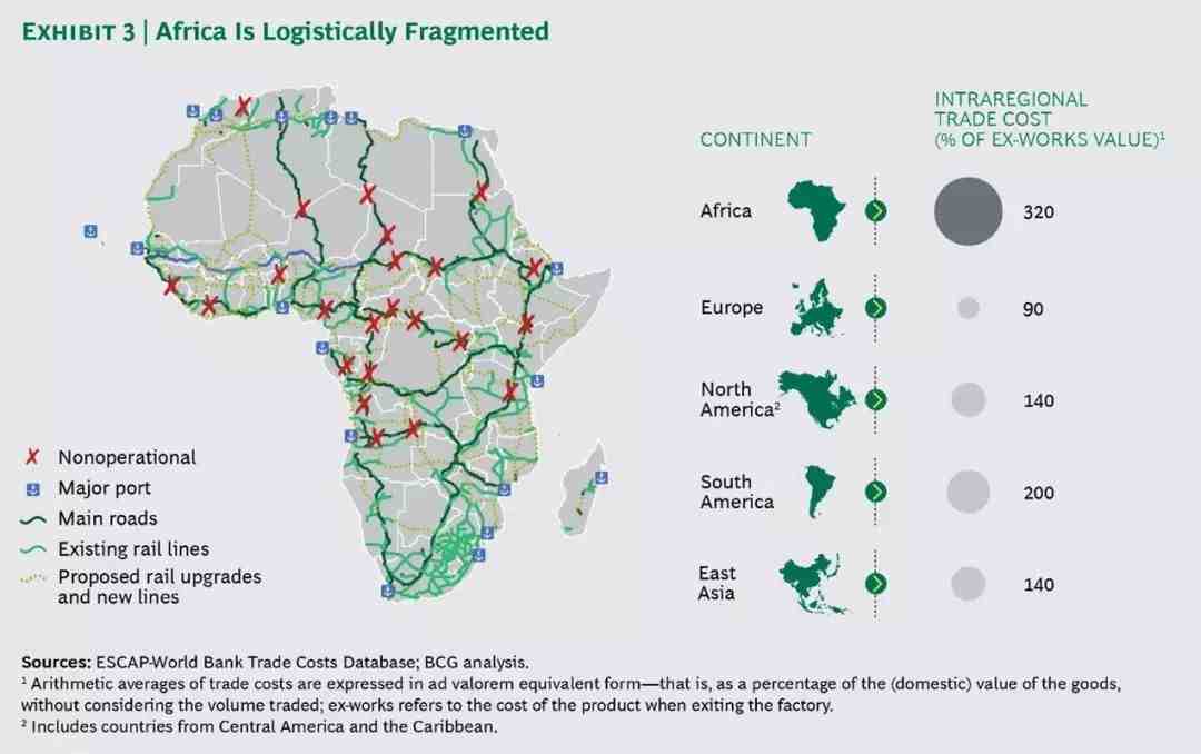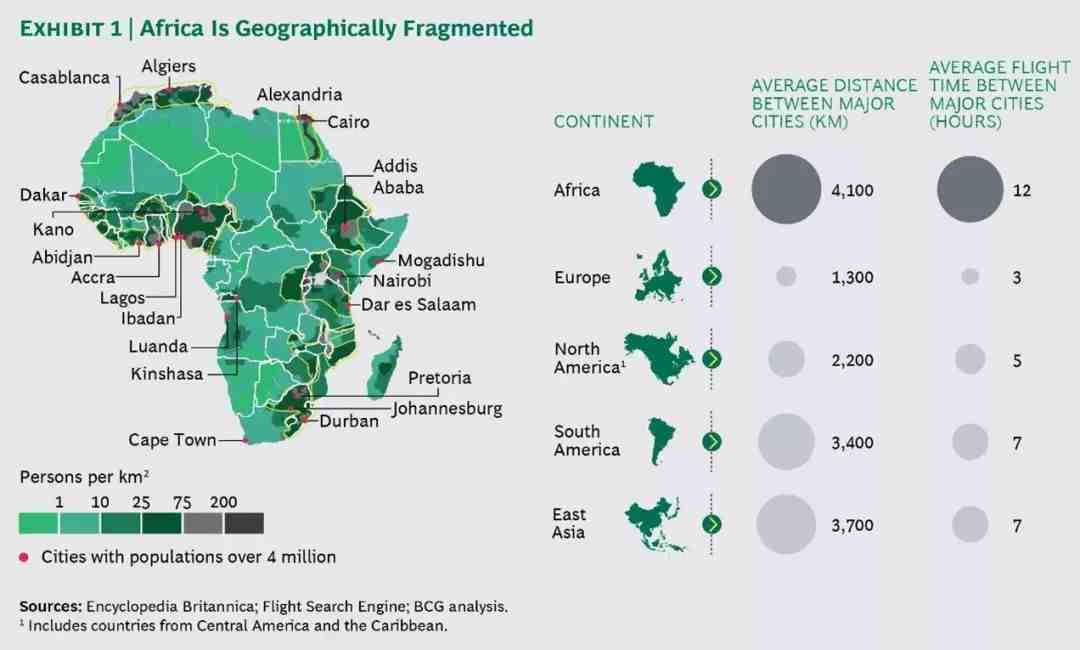 非洲面积巨大,自然资源丰富。但非洲本质上是众多主权相对独立的国家组成的,它们地理跨度比较大,不利于形成统一的市场。