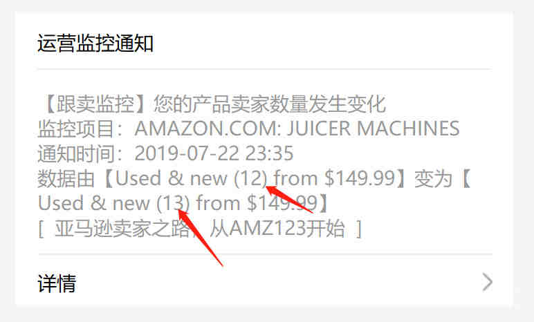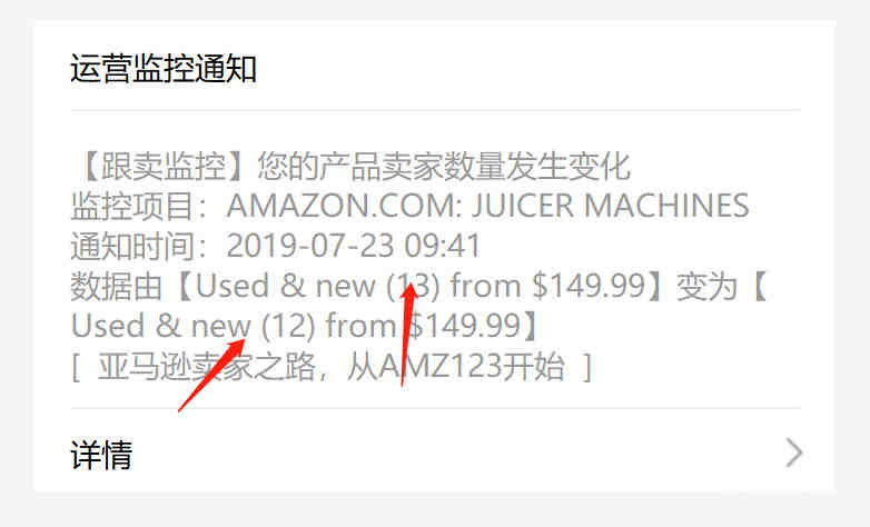 卖方通亚马逊监控插件支持全站点,默认每半小时更新一次数据,一旦有跟卖,将以微信提醒的形式实时推送到您的手机,无论是跟卖增加还是减少都会及时收到通知!