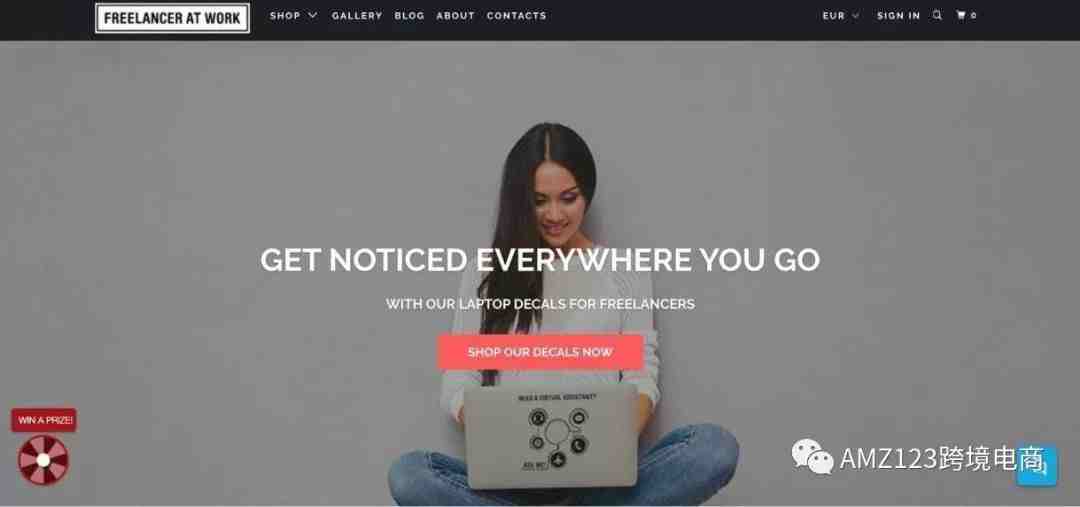 因此,Freelancer At Work推出了针对这个利基的服务。他们销售笔记本电脑贴纸,以便远程办公者可以随时宣传自己的特长。