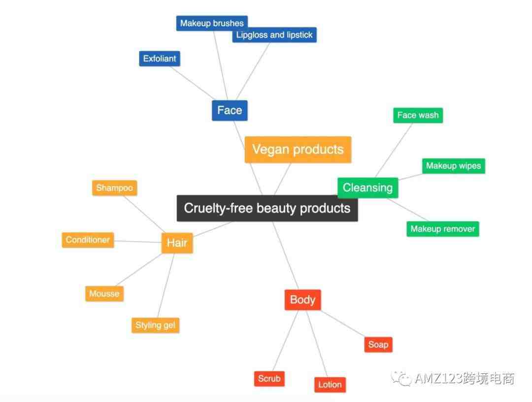 以下是以cruelty-free makeup(零残忍化妆品)为切入点的思维导图: