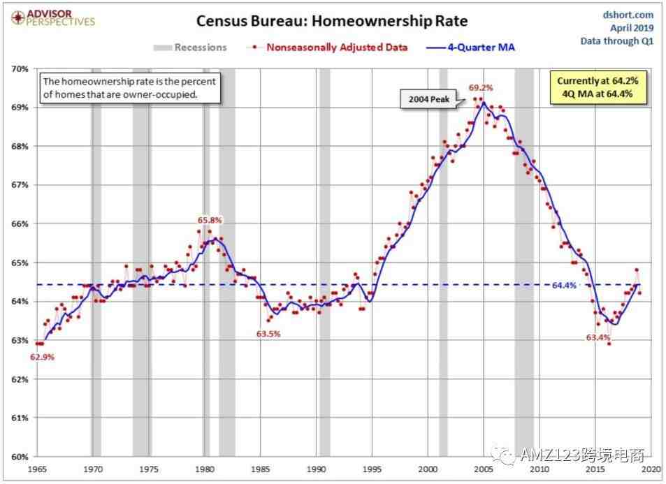 房屋产权不断在变化,美国有房的大众比例也在下降。造成这种情况的原因有很多,比如生活费用上涨和工资跟不上。