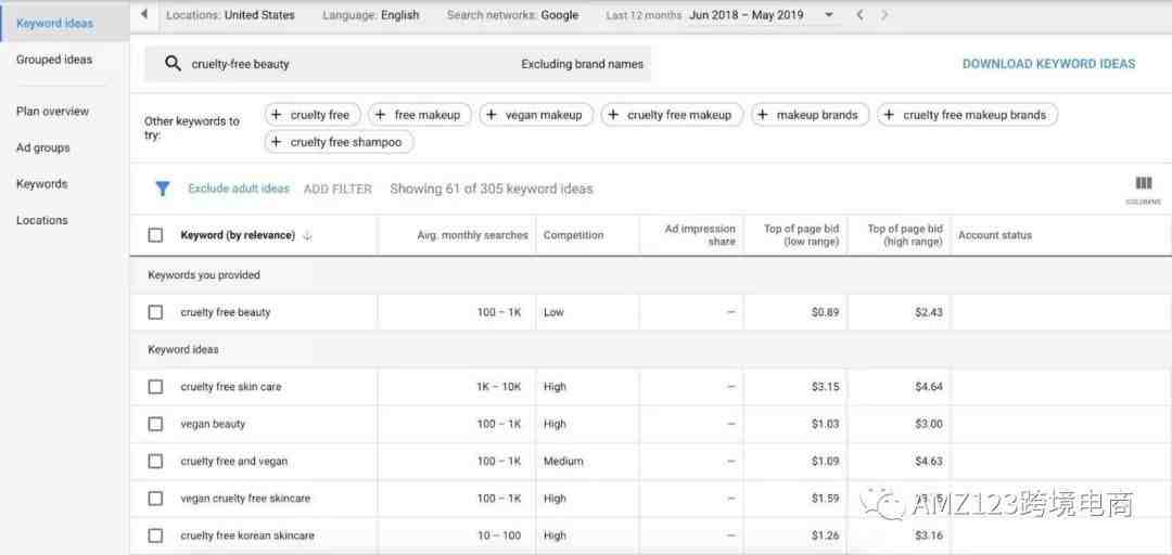 在关键词工具中输入cruelty-free,结果中可能有你想要的潜力产品,以下是部分结果示例: