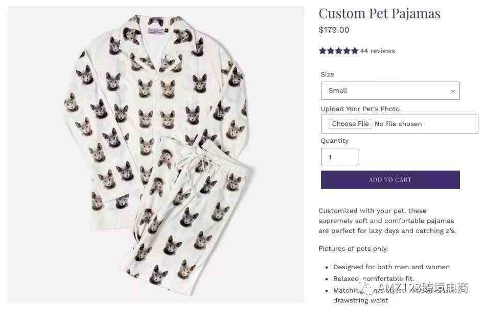 实例:Patricia’s Couture在这个市场上已经开辟了自己的利基市场。他们出售可自定制的睡袍、枕头、睡衣、毯子,以及其他可以贴上爱宠图片的物品。