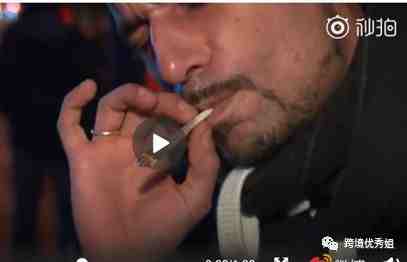 一小伙在镜头面前用力地吸了一口大麻,神情十分得意。