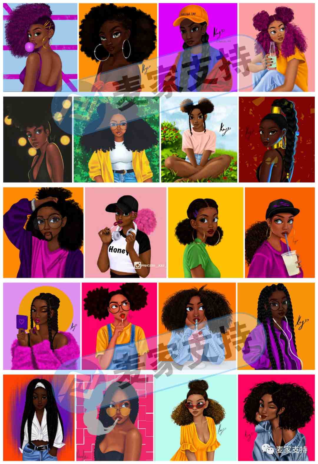 PRINCESS KAY Works是尼日利亚插画家Princess Karibo,为突出各种背景下的黑人女性形象创作的一系列极具个性化特色的插画作品。她的作品以其角色设计和不同名人和流行文化偶像的卡通风格肖像而闻名。她所绘的人物角色经常在色彩鲜艳的背景上被描绘出来,使他们脱颖而出。