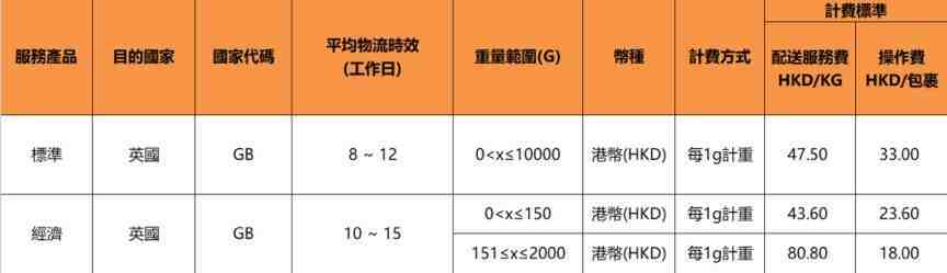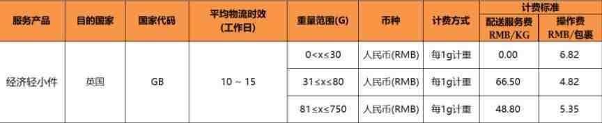 本次价格调整包含目前SpeedPAK英国路向上的全部产品,即SpeedPAK英国标准服务(发货地区为中国大陆和香港),SpeedPAK英国经济服务(发货地区为中国大陆和香港),SpeedPAK英国经济轻小件服务(仅发货地区为中国大陆地区适用),在保证服务质量及时效不变的同时,各产品调整后价格较目前均有大幅下降,具体运费如下