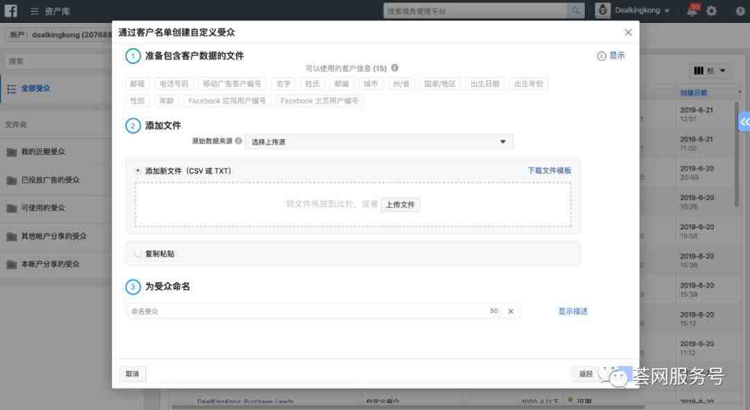 参加了过去2周荟网Facebook培训的荟员应该清楚,“受众”是Facebook运营中最宝贵的核心资产。作为亚马逊卖家,如果通过FBA发货,大家几乎无法获得买家的任何直接联系方式,唯一能够获得的只有客户的姓名和地址。而通过Facebook的“自定义受众”功能,大家将可以快速、精准的通过Facebook大数据功能精准找到买家,并对他们进行精准定位,跟进产品评价(具体方式荟网在今后的在线和线下Facebook培训中会与大家分享)。这种方式的优势是大家无需花时间创建独立站或者Facebook页面,在把亚马逊客户信息上传到“Facebook自定义受众”中后,可以直接通过Facebook广告投放就可以对相关客户进行评价跟进。但是,劣势是除广告投放外,大家无法获得买家的详细联系方式。