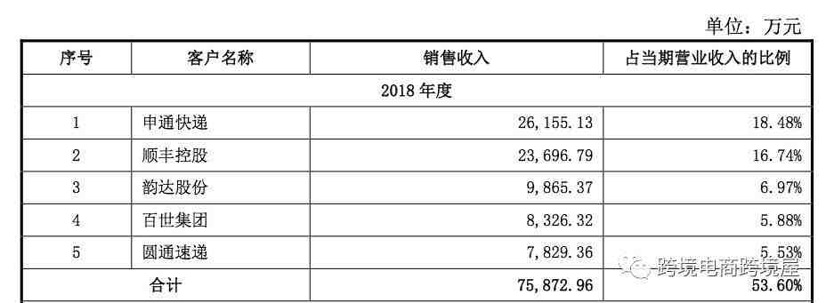 九恒2018年服务的前五大客户,都是国内快递行业的龙头,分别是申通、顺丰、韵达、百世、圆通。