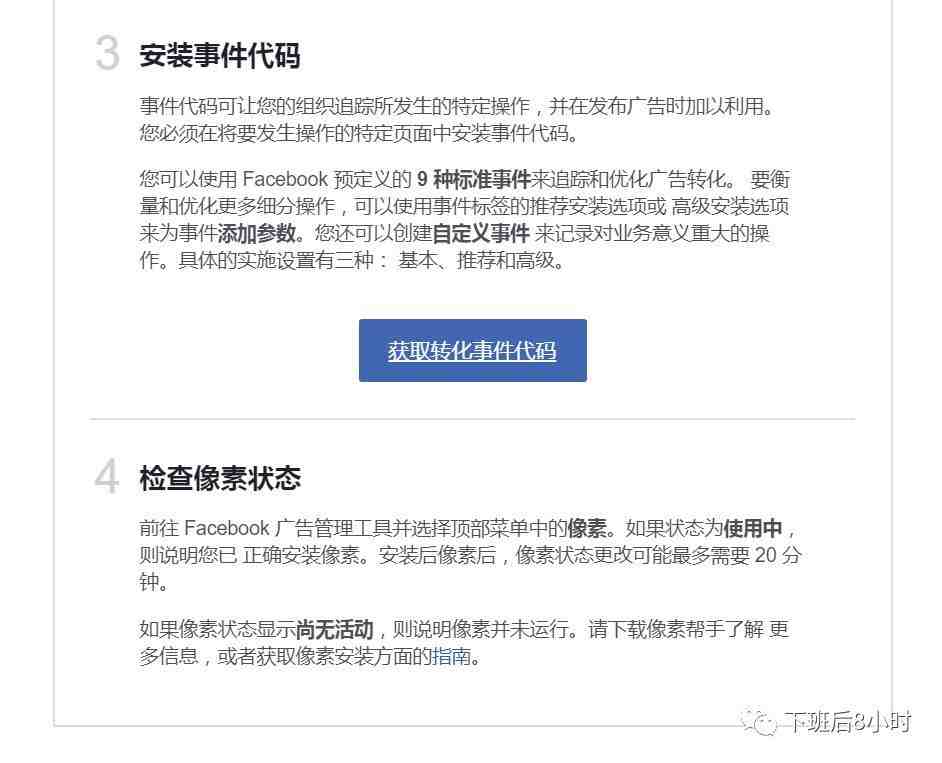 第2步, 随即显示的页面会进一步说明 Pixel 像素代码提供的信息,点击创建 Pixel 像素代码