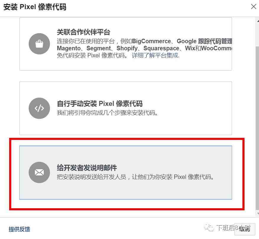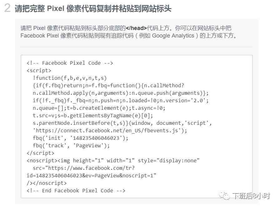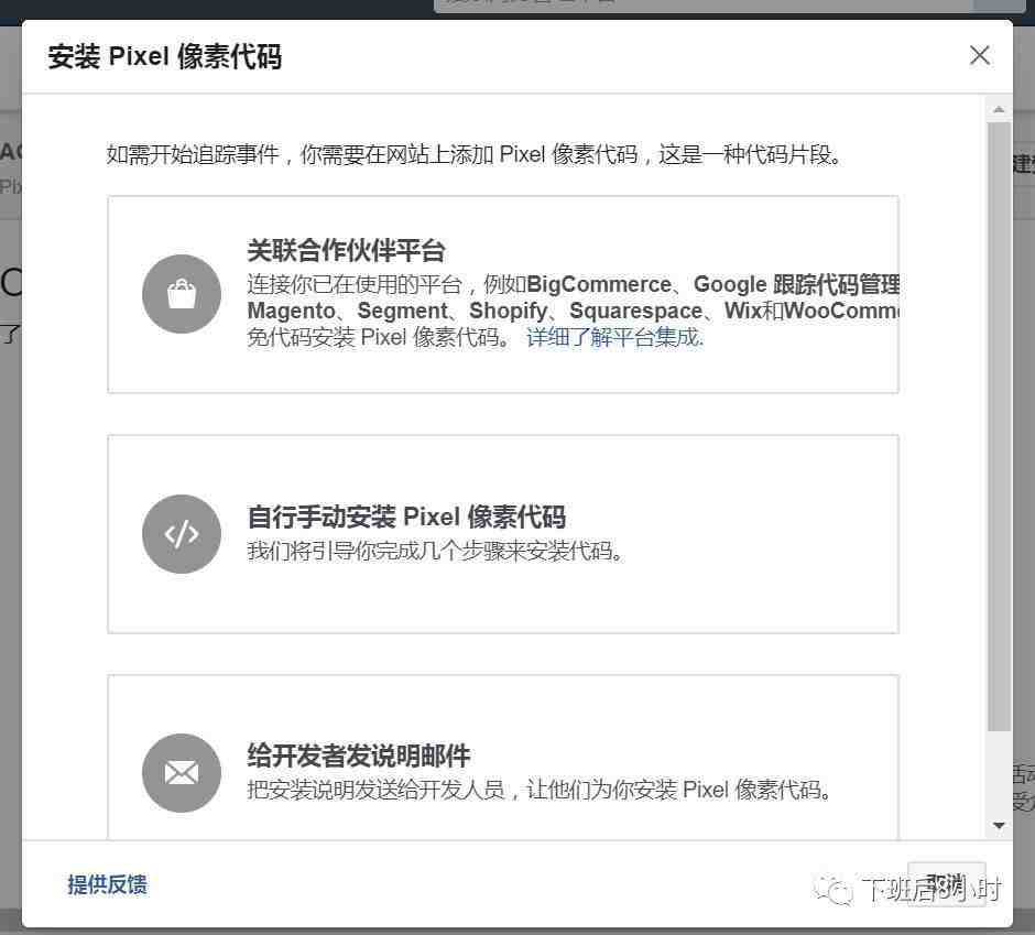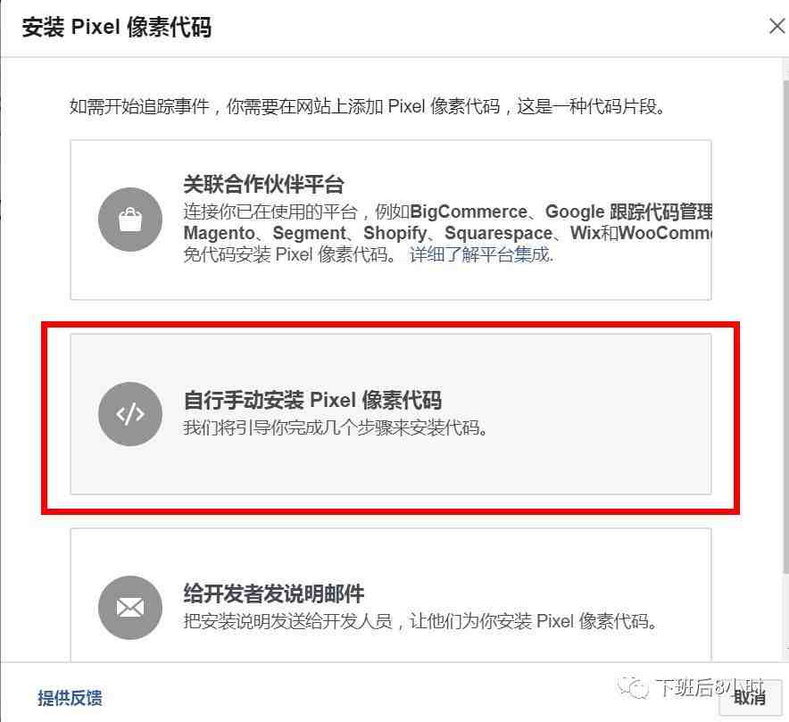 选择“手动安装Pixel像素代码”,按照说明操作来进行安装,