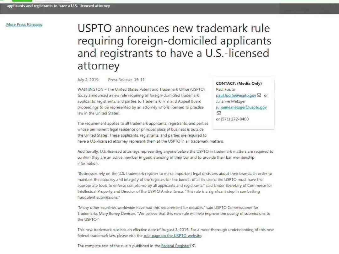 美国商标局近日通告,2019年8月3日起美国商标必须全程由持有美国执照律师才能操作处理,直接导致美国商标注册的成本将大幅上涨,需要的尽早办理,观望还是观望,只会越来越难,出海者联盟现在团购全球商标中。
