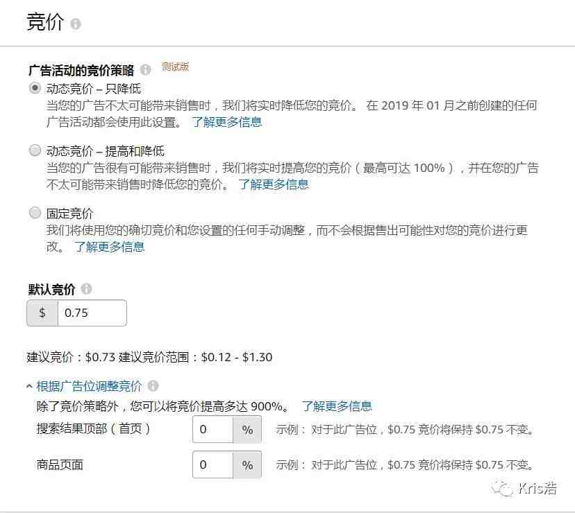 (竞价策略选“只降低”和默认竞价即可,以后Kris浩再跟各位说如何选择)