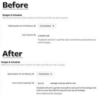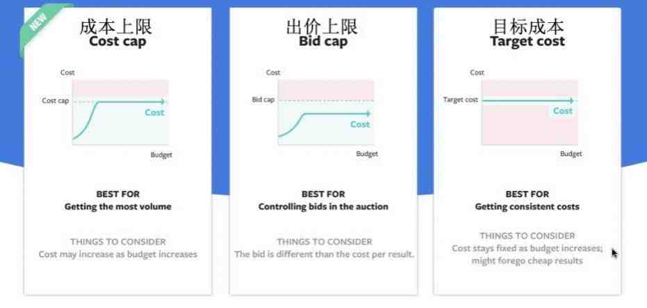 从六月底开始,全部广告主将都能够使用成本上限的出价策略,在加强成本控制的同时,简化优化过程。但是,广告主仍可以手动选择其他的出价策略方式。以下为改版前后对比图: