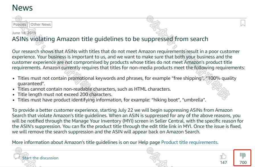 因为这个改动很多的不合理之处,导致了大量的卖家给出差评,我们也在上篇文章最后呼吁大家去后台点踩。现在这个公告已经获得了亚马逊后台公告系统上线以来最多的反对票。