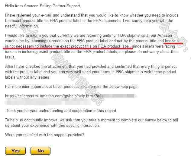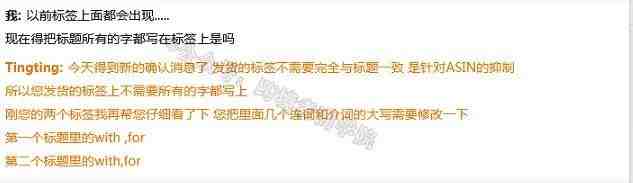 这个消息是由我们群内的卖家学员向我们爆料的,他今天在咨询客服的时候,客服说有最新的通知,确定了货件标签和产品标题不需要完全一致。