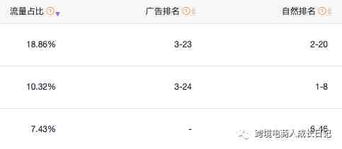 搜索此关键词该ASIN在前台搜索页展现的自然排名;